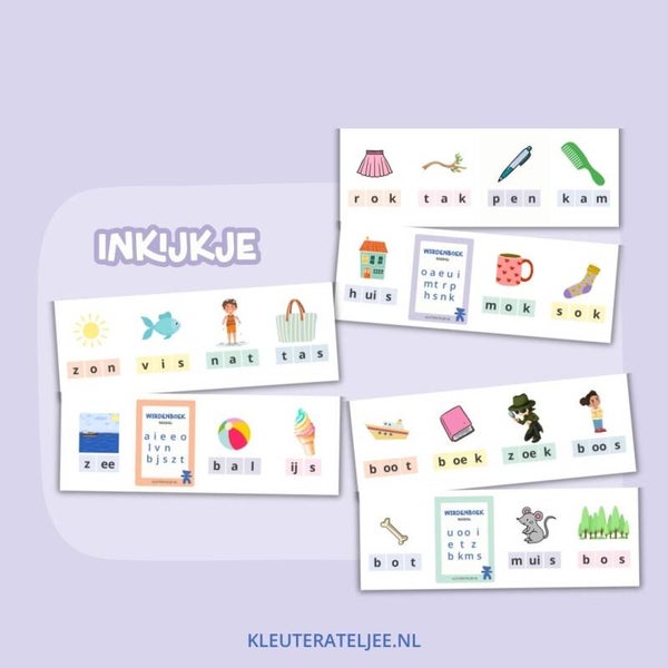 Toont jouw kleuter interesse in letters, maar wil je géén werkbladen of druk leggen op leren lezen? Deze miniboekjes bevatten 21 korte, herkenbare woordjes die jouw kind zélf kan leggen met bijvoorbeeld magneetletters.