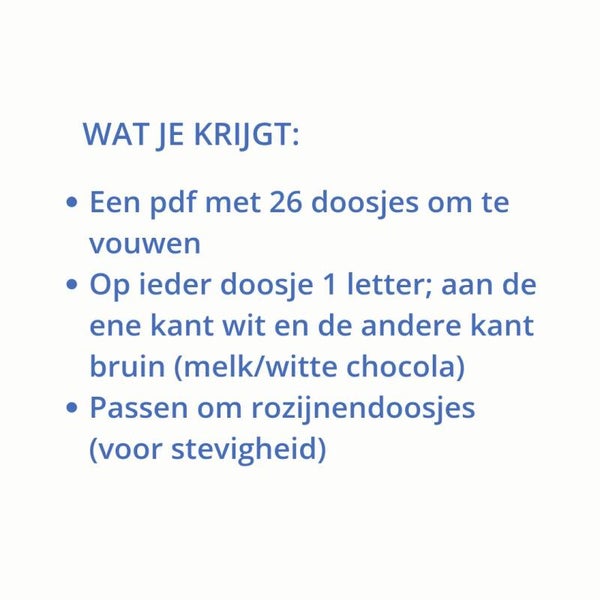 Deze mini chocoladeletterdoosjes nodigen uit tot spelend de letters leren herkennen. Print de doosjes (formaat rozijnendoosje), knip, vouw en plak en het spel kan beginnen!